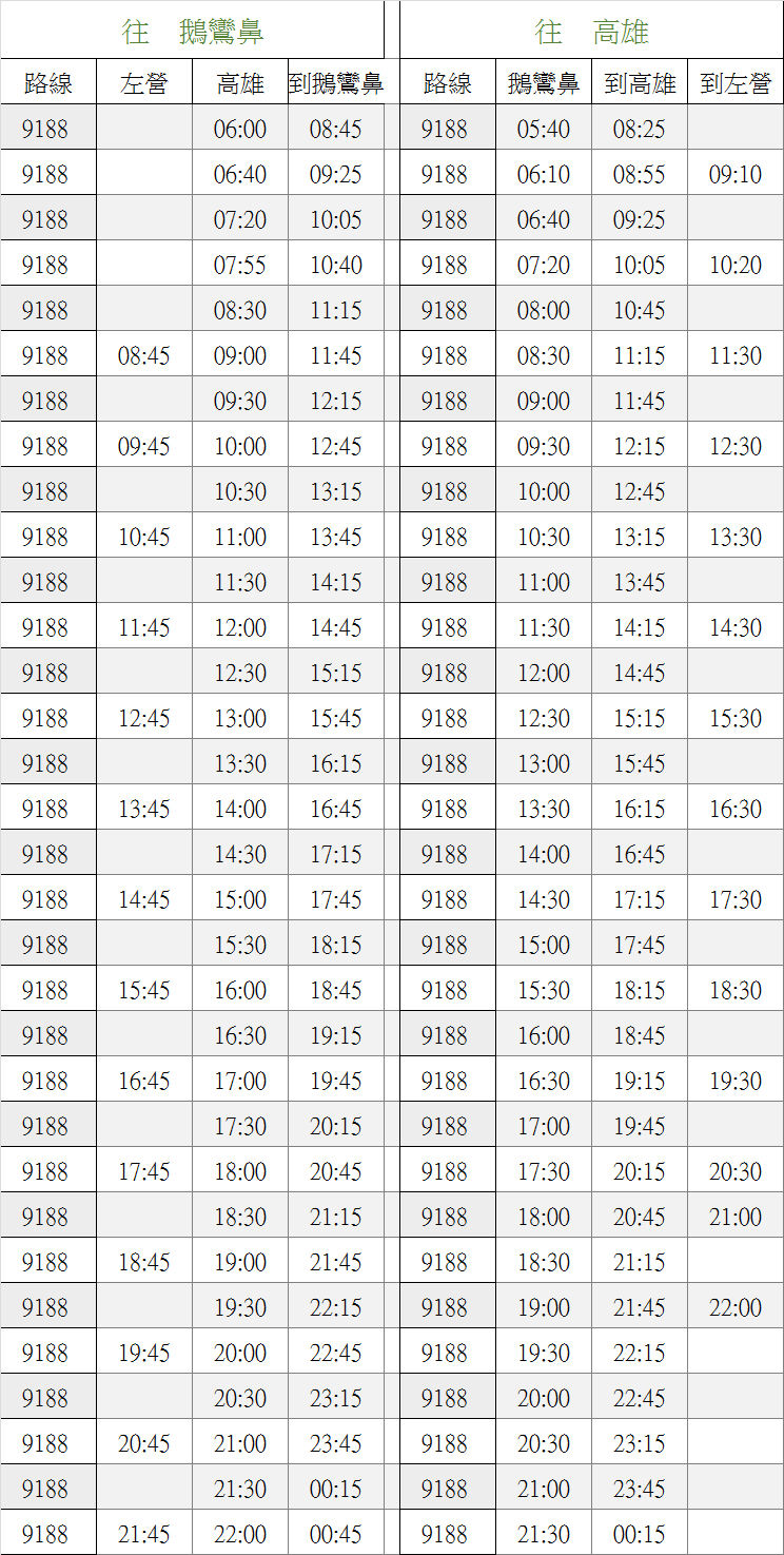 這是9188的時刻表 (9188 time table)